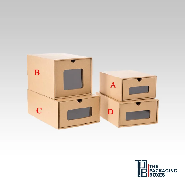 When browsing for a colour pallet to develop your branding, use one you can stick to. It makes your brand more recognisable on social media and retail stores. Our expert designers will introduce you to a wide range of combinations curated just for you to pick from to represent your brand. Two box designs are commonly seen at shoe retailers. One is the classic two-piece box with a detachable lid, and the other comes with an attached hinged lid. A more unconventional and creative way could be using a drawer box with a satin ribbon made into a bow, specially designed for luxury shoes into cheap cardboard shoe boxes. The user would slide the boots out from the centre drawer, and every time they use it would be a thrilling experience in unveiling their beautiful shoes. It would instantly attract attention and add gold stars to the customer experience. Whichever you choose is based on preference. Adding die-cut window sheets to your box lids is another idea. Consumers will quickly locate the shoes they are looking for, avoiding the hassle of opening every box and saving time. If you’re a sneaker hoarder or you have a massive shoe collection to want to neatly store, drop front shoe boxes are the way to go. What’s great about them is that you won’t have to unstack your pile of shoe storage boxes UK to pick one. You won’t even need to move the boxes around, so there wouldn’t be any wear or tear. Stacking different box sizes from various brands can turn into a nightmare, so this is the answer to your shoe storage dilemma.
